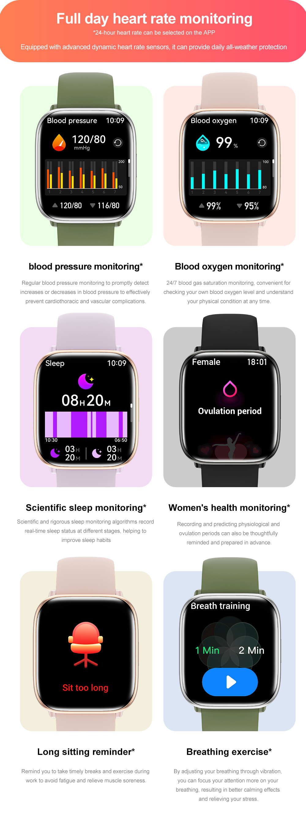 3. 230mAh big battery/ HX3918 Real blood oxygen and Real heart rate/ Fitcloupro App/ IP68 waterproof